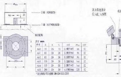 SAMSON執行機構品種規格齊全,其中既有同時提供符合IEC60534-6-1的鑄造支架側面凸緣接口和符合VDI/VDE3847直接集成接口的3277型氣動執行器(具有符合VDI/VDE3847的直接集成連接的執行機構由于規范的支架尺寸和內置氣路等原因,膜室尺寸受到結構限制,3277型膜片有效面積最大到700cm,2共有6種尺寸);也有從120到2*2800cm有效面積、結構為符合IEC60534-6-1鑄造支架側面凸緣的3271型氣動執行器(有7種尺寸),對角行程執行機構符合VDI/VDE3845,連接細節參見圖5。